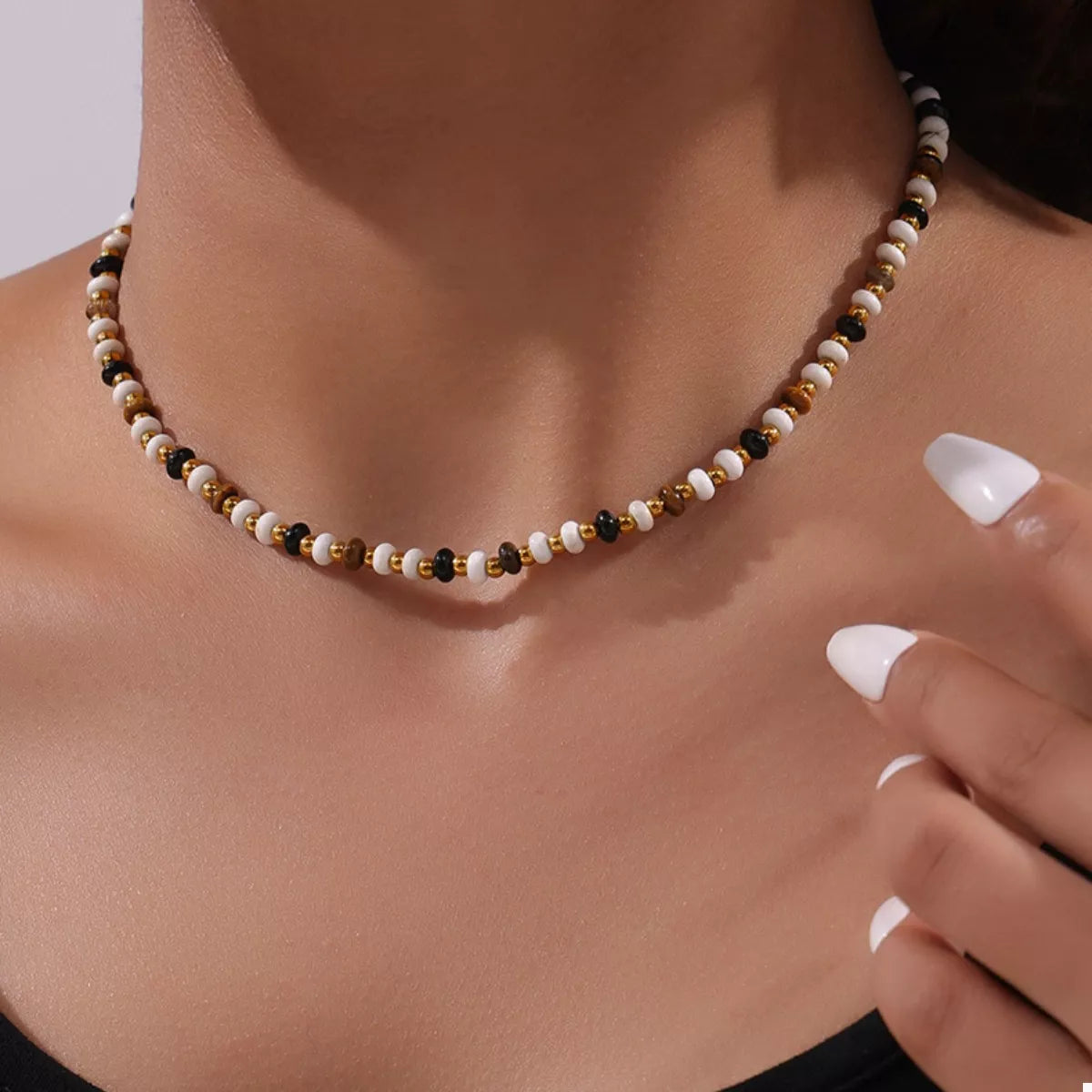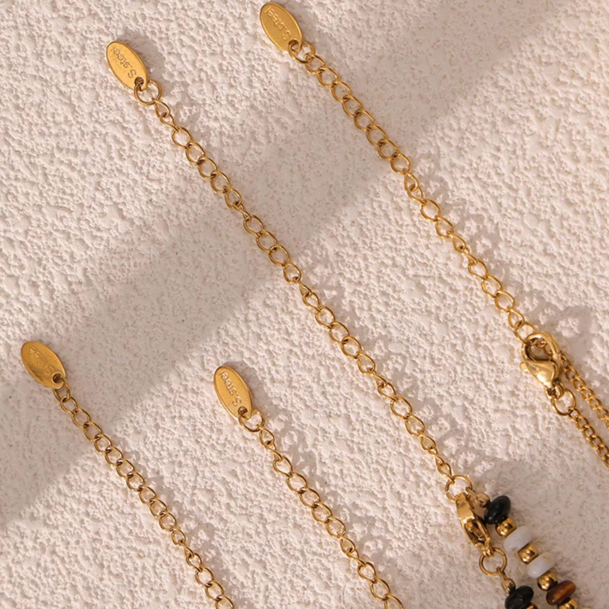 2 Piece Natural Stone and Gold Chain Necklace with Pendant