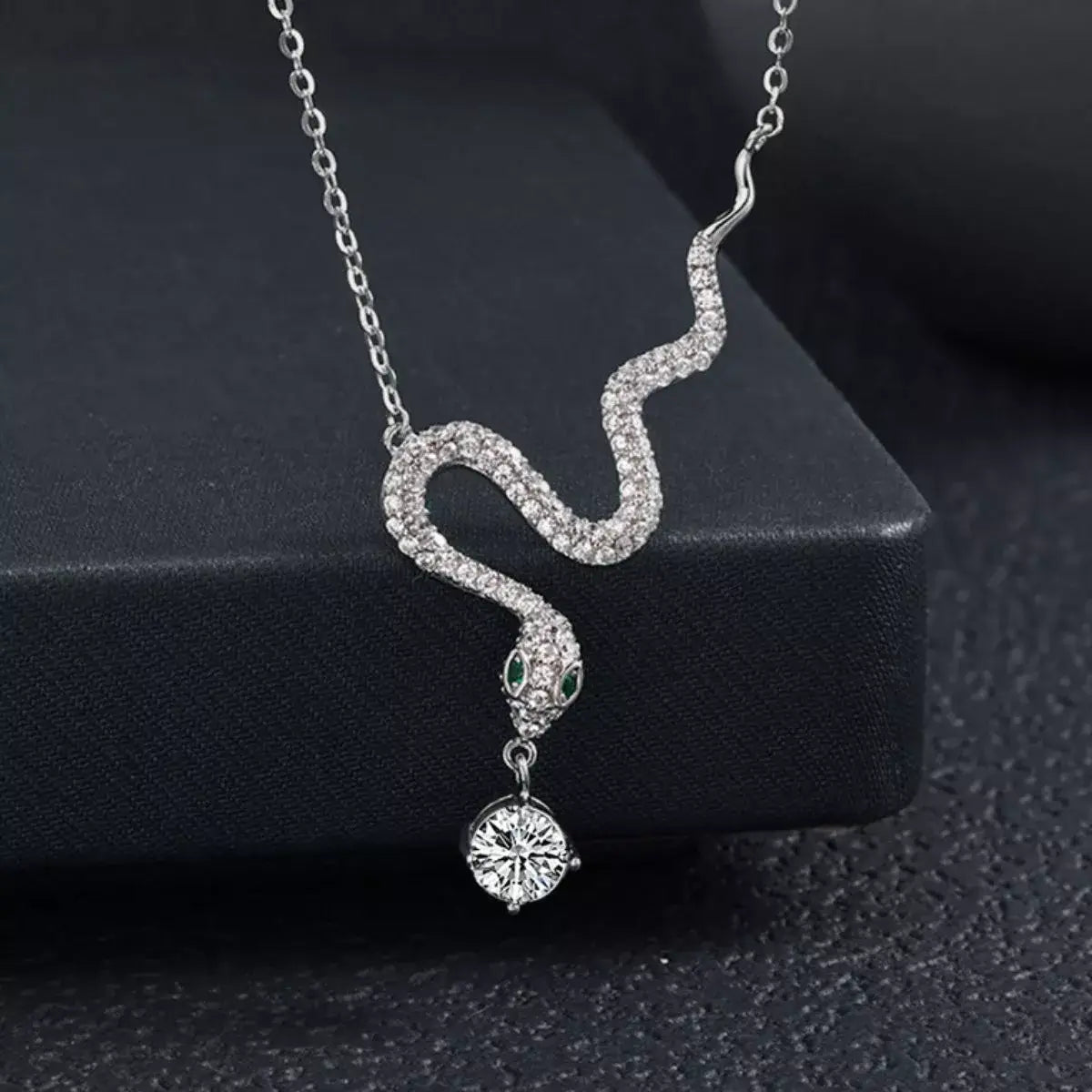 925 Sterling Silver Moissanite Snake Pendant Necklace