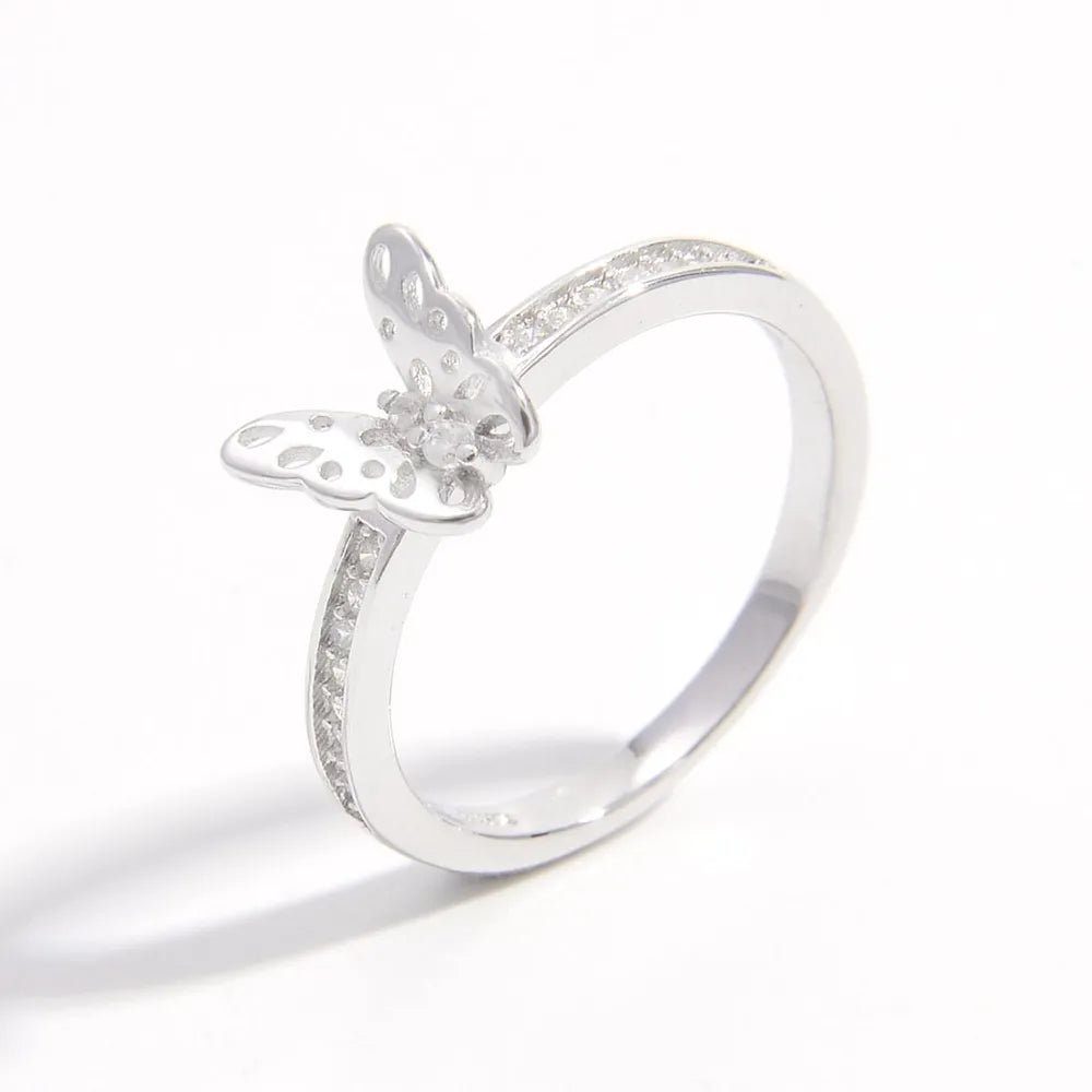 925 Sterling Silver Inlaid Zircon Butterfly Ring