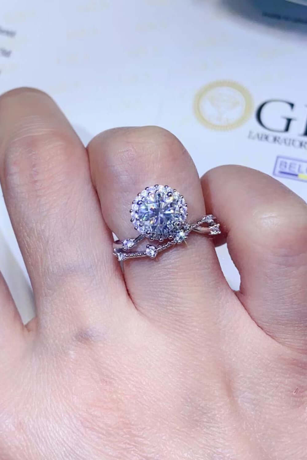 Moissanite jewelry over 0.3 carats includes a certificate of stone properties. Limited warranty included, please contact us for any issues related to your purchase.