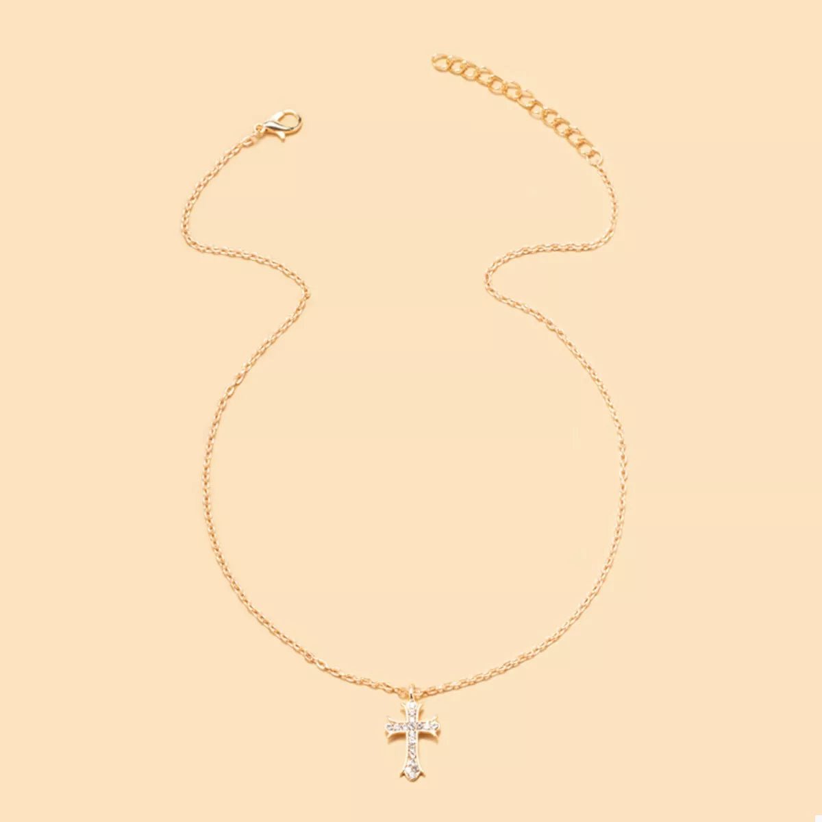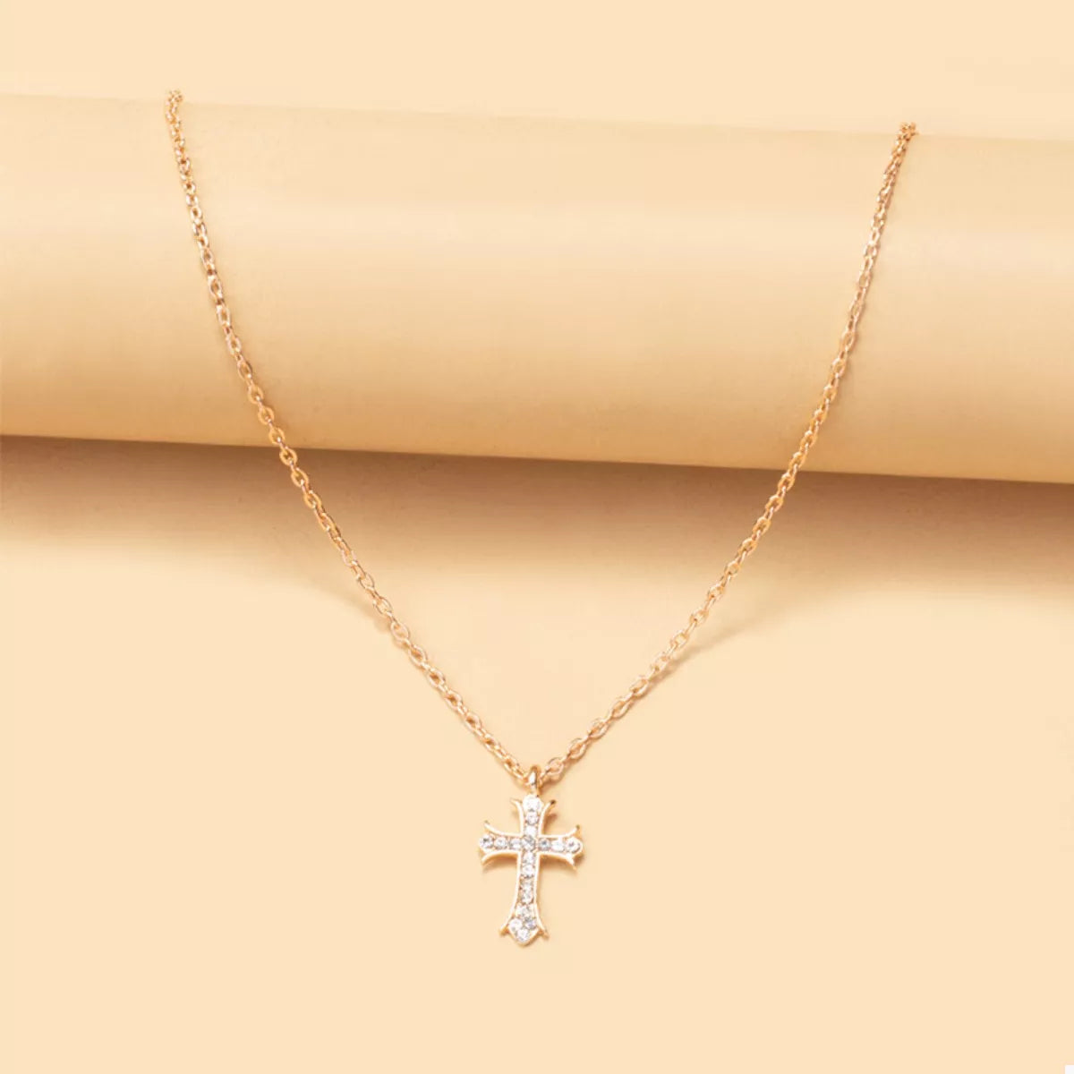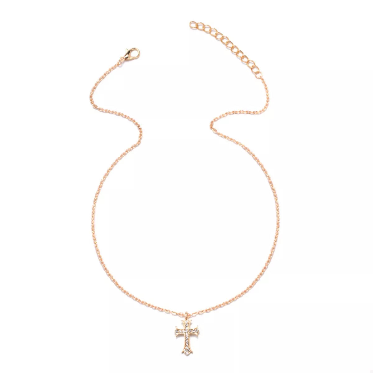 18K Gold-Plated Rhinestone Cross Necklace