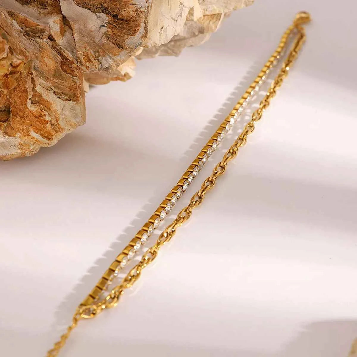 18K Gold-Plated Rhinestone Double Layered Bracelet
