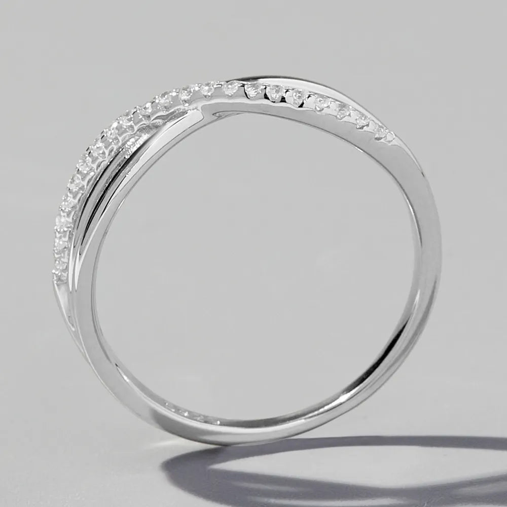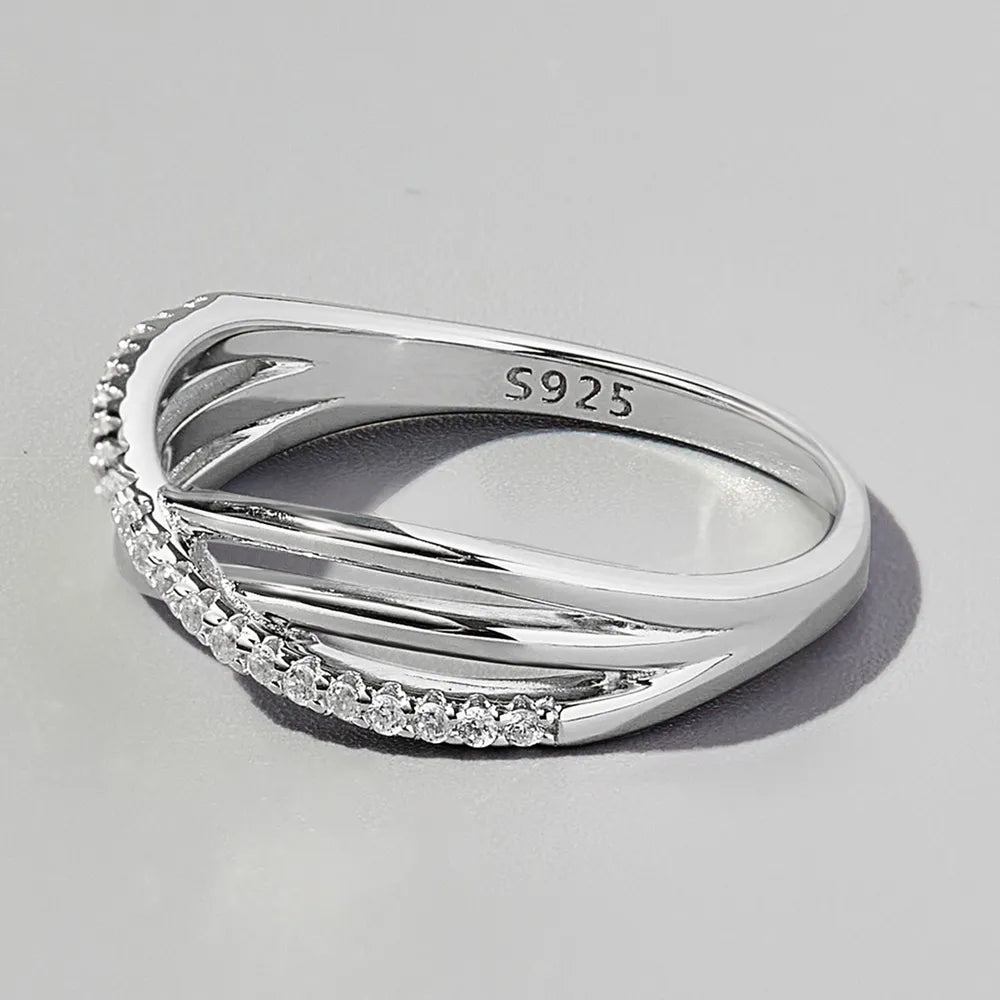 Crisscross Inlaid Zircon 925 Sterling Silver Ring