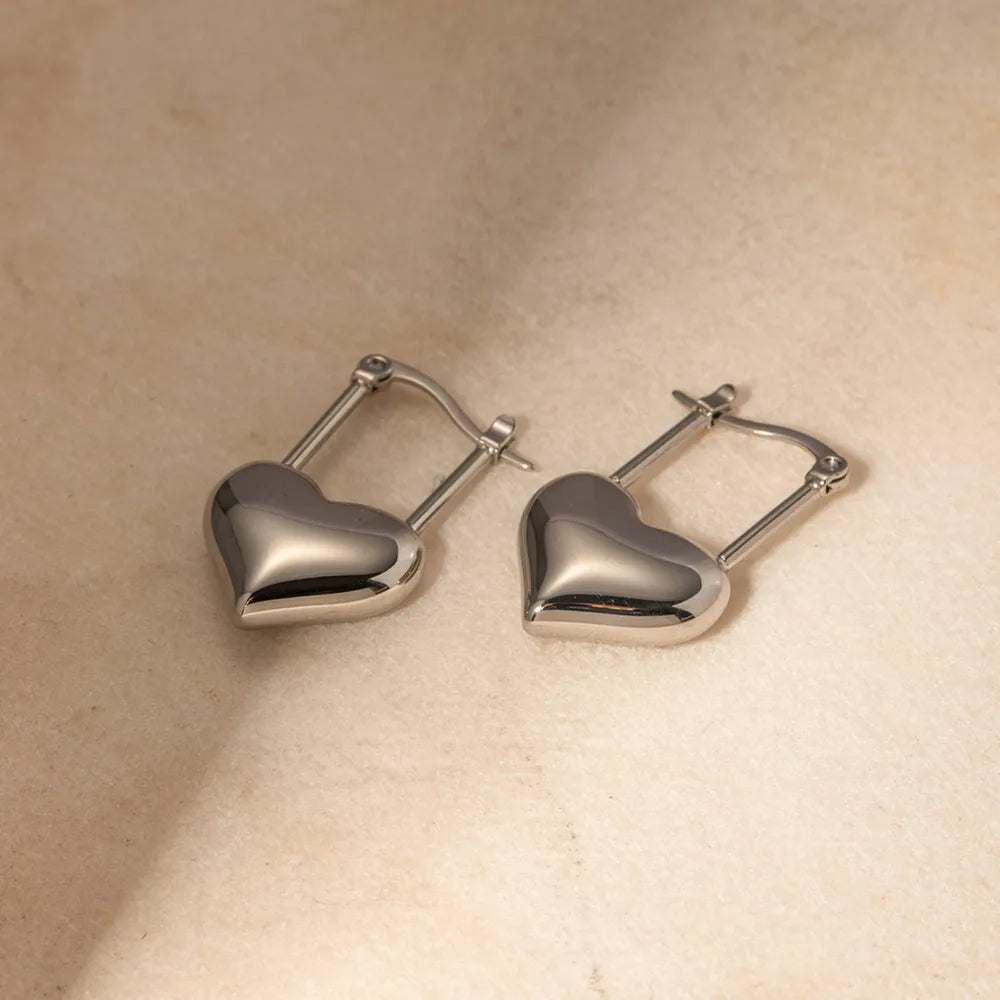 Stainless Steel Heart Lock Drop Earrings