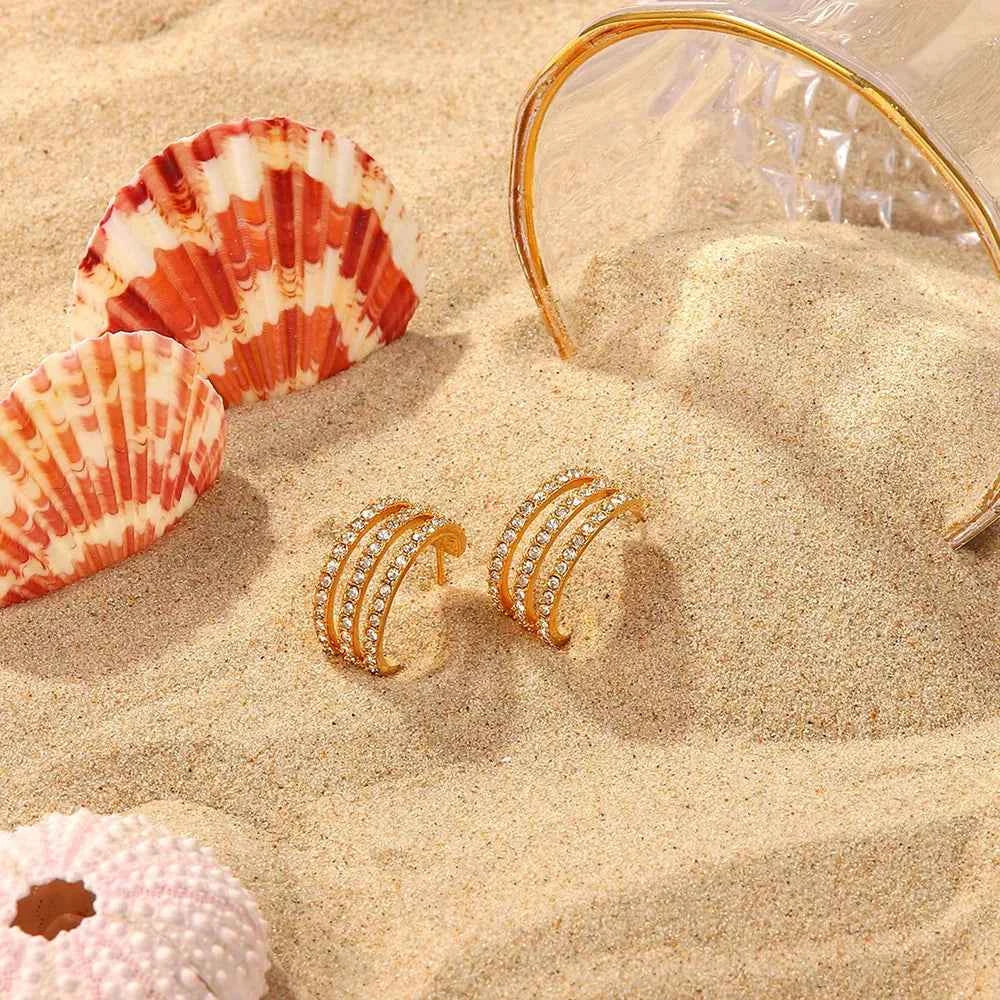 Stainless Steel Inlaid Zircon C-Hoop Earrings - Gold / One Size está em espera e será enviado assim que estiver de volta em estoque