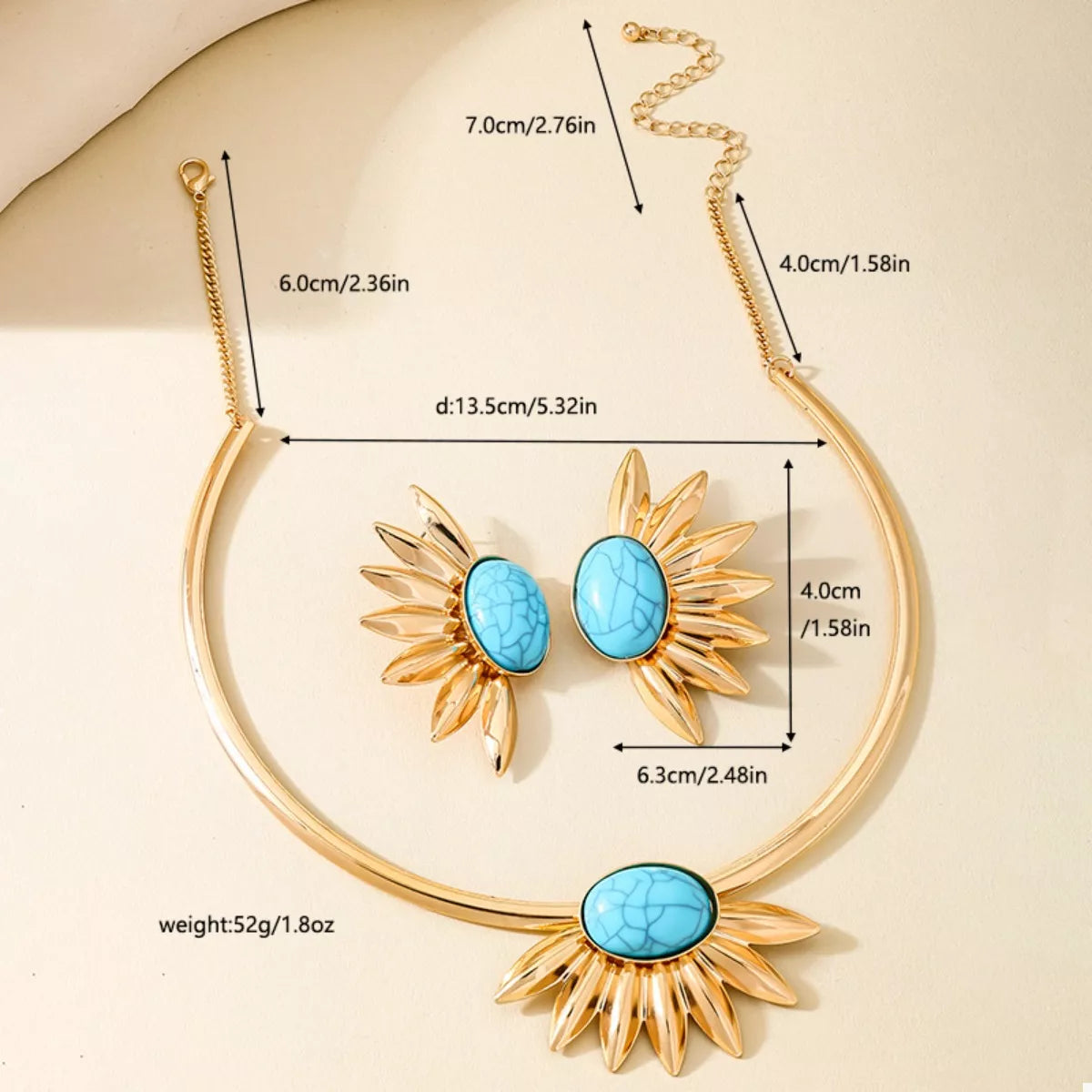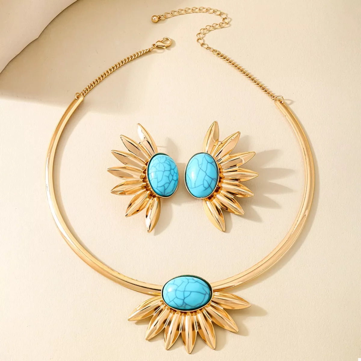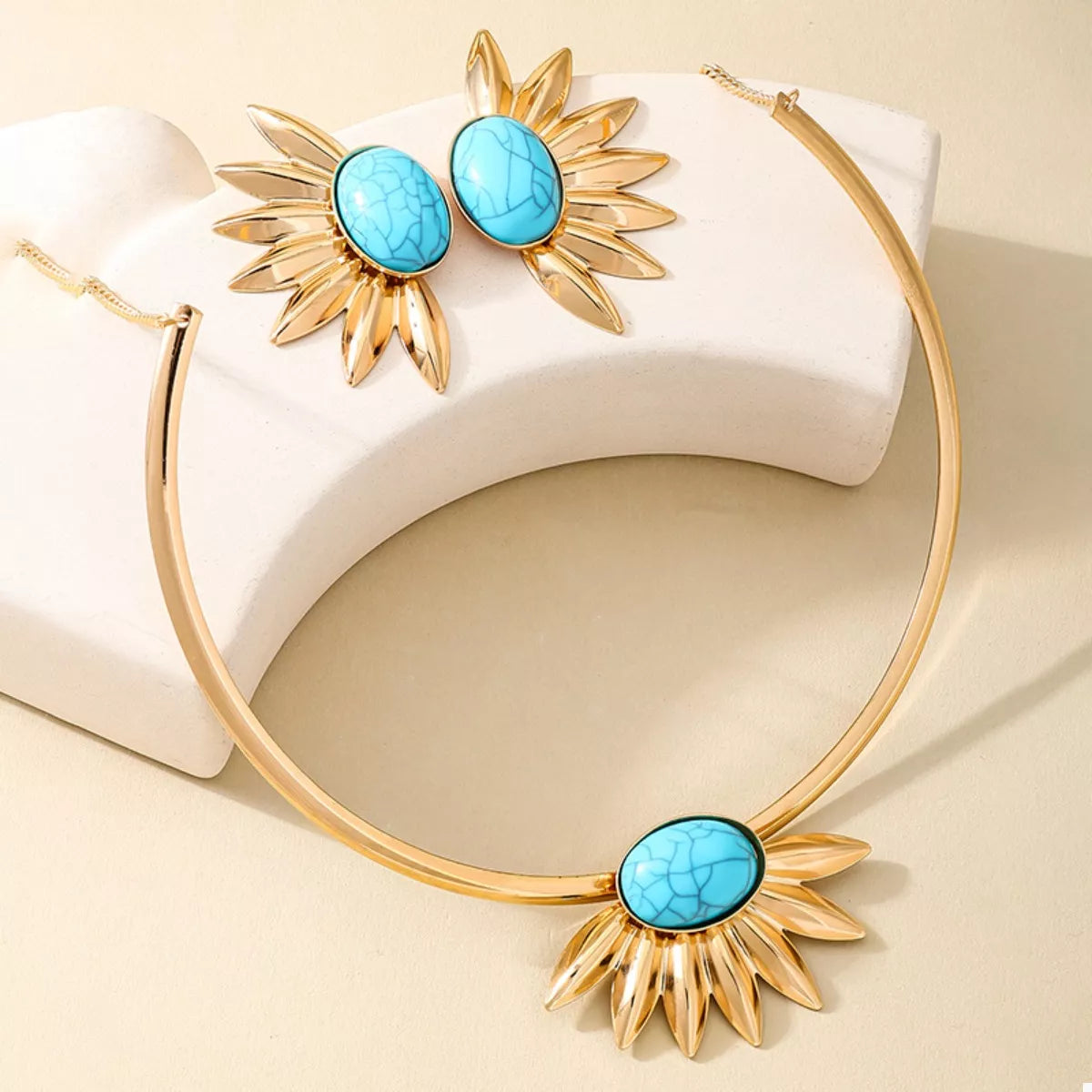 Turquoise Sunflower Necklace and Earrings Jewelry Set
